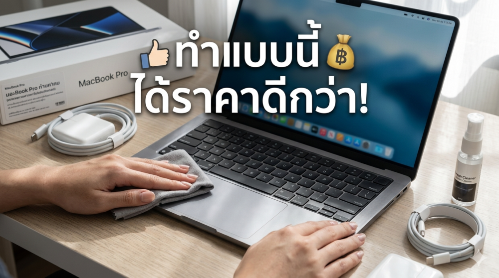 - เก็บอุปกรณ์ให้ครบก่อนไป กล่อง + Charger ต้นฉบับ + ใบรับประกัน (ถ้ายังอยู่) สิ่งเหล่านี้เพิ่มมูลค่าได้หลายพันบาทโดยที่คุณไม่ต้องพูดถึงเลย