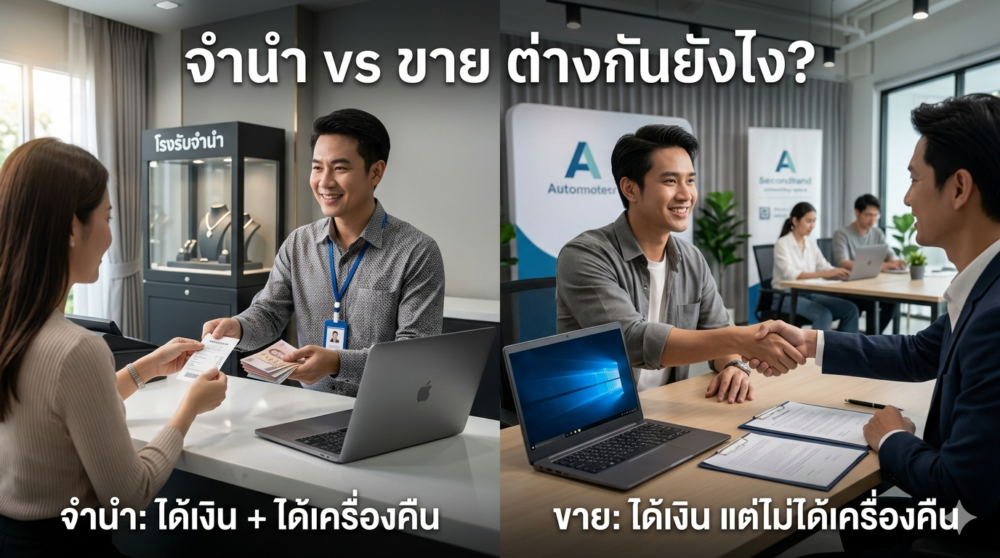 💡 สรุปง่ายๆ: ถ้าคุณรู้ว่าจะมีเงินคืนมาใน 1–3 เดือน → จำนำ ถ้าคุณอัปเกรดเครื่องใหม่แล้วและไม่ต้องการเครื่องเก่าอีกต่อไป → ขายอาจได้เงินมากกว่าเล็กน้อย